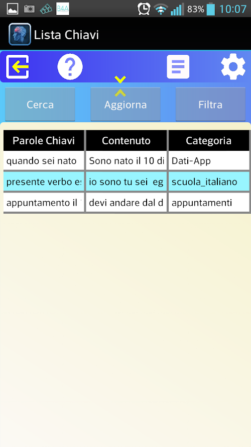 adesso il nostro segretario personalizzato ha nel cervello tre informazioni.(vedi sopra).