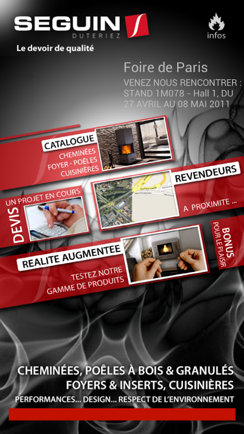 With the new application, Seguin accompany you and guide you in your choice of fireplace, stove, wood stove or pellet, with simple and practical features.