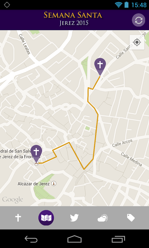 Aplicación oficial de la Unión de Hermandades y del Ayuntamiento de Jerez para el seguimiento de las Cofradías de la Semana Santa de Jerez del año 2015. Con esta aplicación se podrá conocer, en tiempo real, donde se encuentran los pasos de las distintas cofradías que estén realizando su estación de penitencia en la ciudad de Jerez.