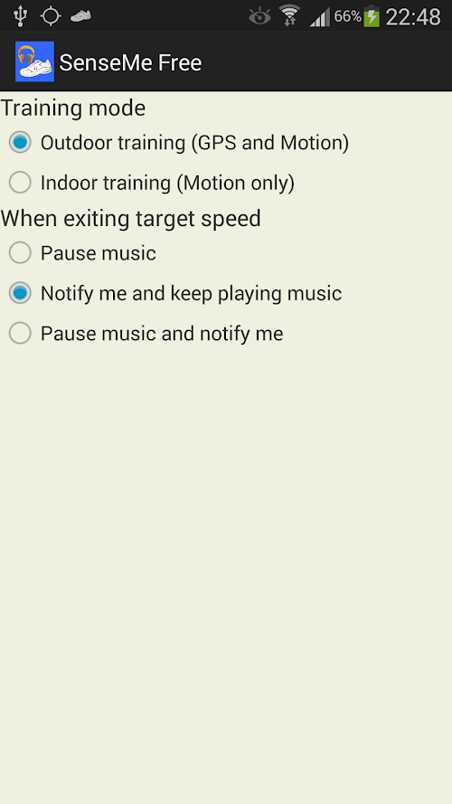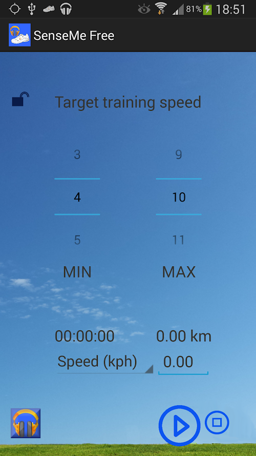 SenseMe controls Google Play Music app, it can Play/Pause the music and notify you whenever you are out of the configured target training speed.