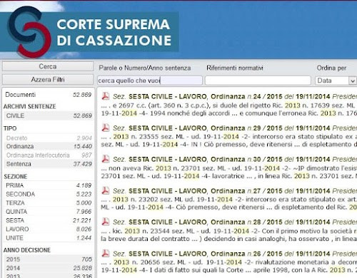 Per eseguire il download del testo della sentenza ricercata, toccare l'icona con il simbolo rosso e grigio (logo Adobe Reader). Buona consultazione!Judgments of the Court of Cassation and latest legal news available online.