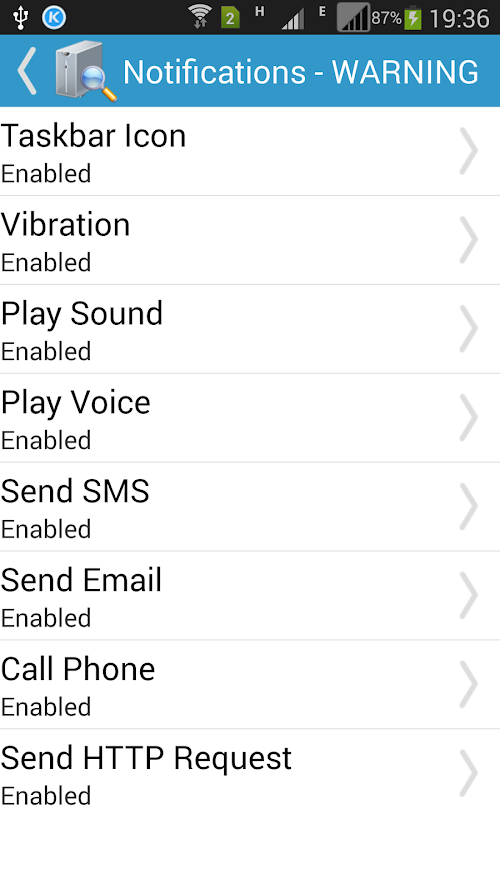 * Auto send HTTP request to your web server, to let you record the server down / warning events to your own web system
