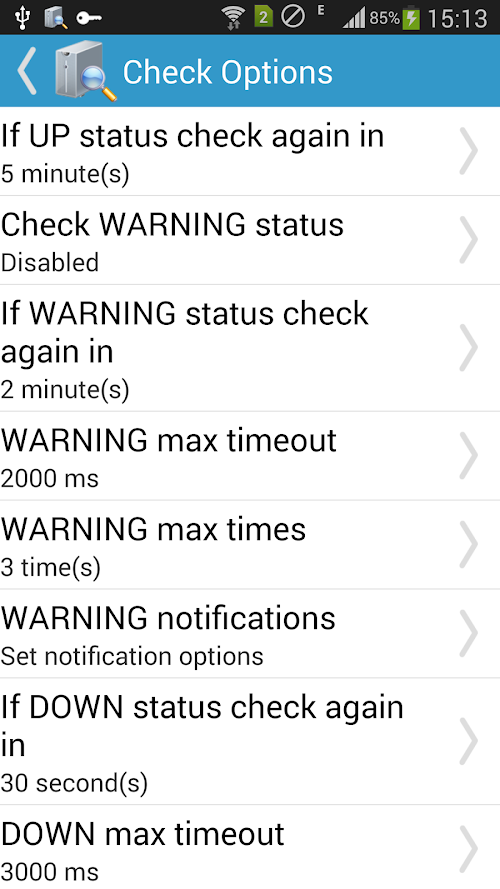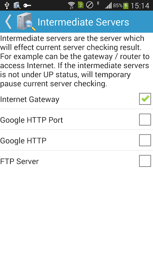 * Support “Intermediate Server” options. If your device connect to a router, and then connect to the server you want to monitor, you can set the router device as “Intermediate Server”. So if the router or Internet access have problems, will not affect the actual server you are monitoring