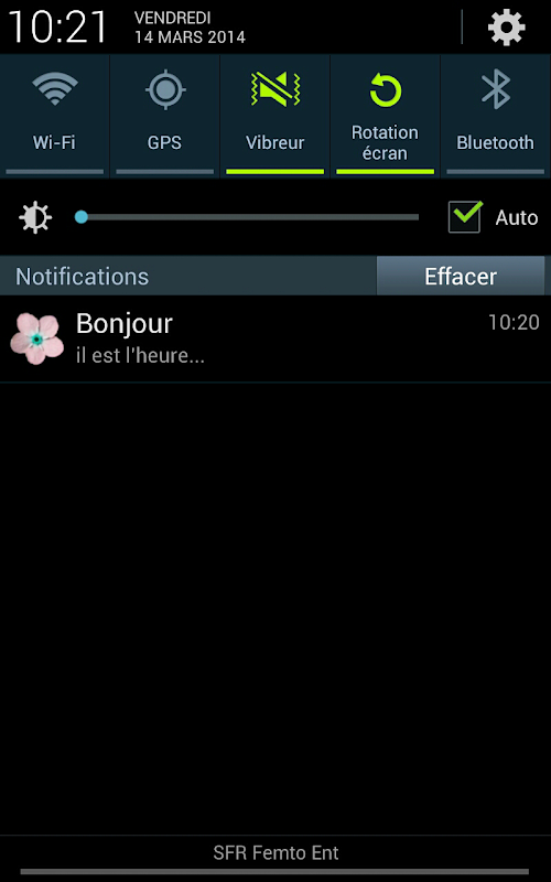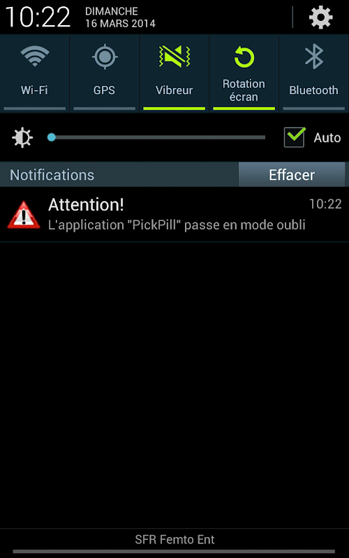 Le Service PickPill, associé à l'application PickPill, vous envoie des notifications à l'heure de prise de votre pilule contraceptive. Si la prise de pilule n'a pas été validée, le Service PickPill envoie des notifications de rappel et, lorsque le délai de prise du comprimé contraceptif est dépassé, vous recevez une notification de passage en Mode Oubli. Le Service PickPill contrôle en plus si des notifications ont été mal envoyées. Il est indispensable à une utilisation optimale de l'application PickPill.PickPill the Service associated with the PickPill application sends notifications to you at the time of taking your contraceptive pill. If taking the pill has not been validated, the PickPill Service sends reminder notifications and when the time limit for taking the contraceptive pill is exceeded, you receive a notification of passage Forgot Mode. Service PickPill more control if notifications were misdirected. It is essential for optimal use of PickPill application.