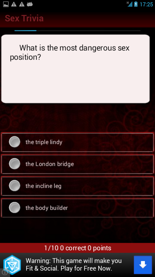 If you are looking to download other versions of Sex Trivia Android Game, We have 1 version in our database. Please select one of them below to download.