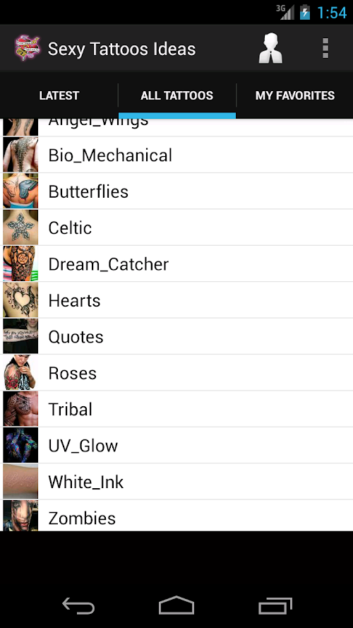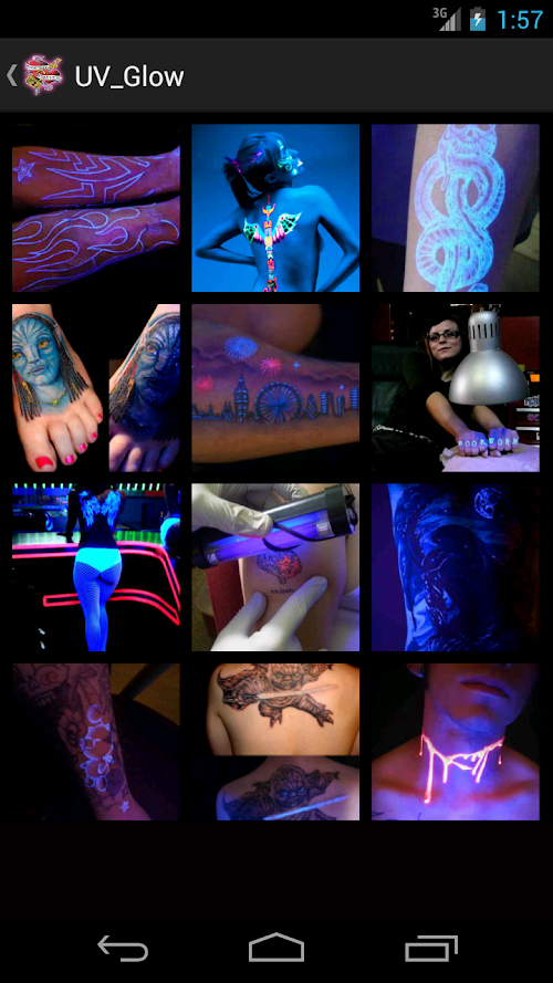 - Browse new trendy tattoos categories: White Ink, UV / Glow, 3D and Bio-mechanical.