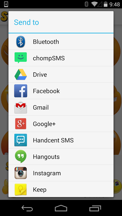 To share a shady smiley, simply touch it, then touch the chat app you want to share it with!