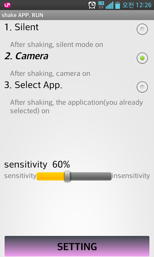 2. "Camera" : shake to run the default camera