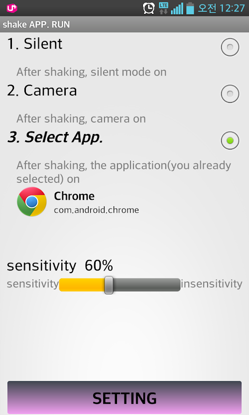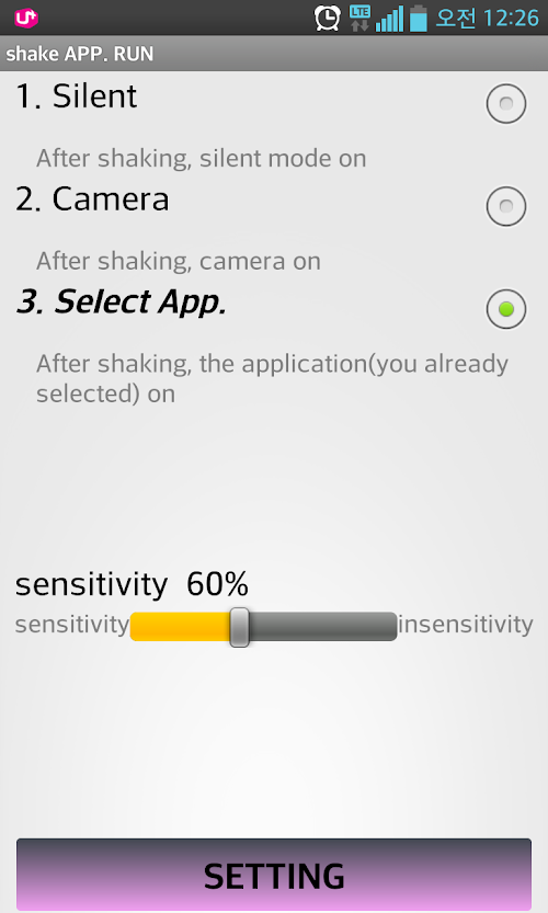 Shake the device to run the specified application