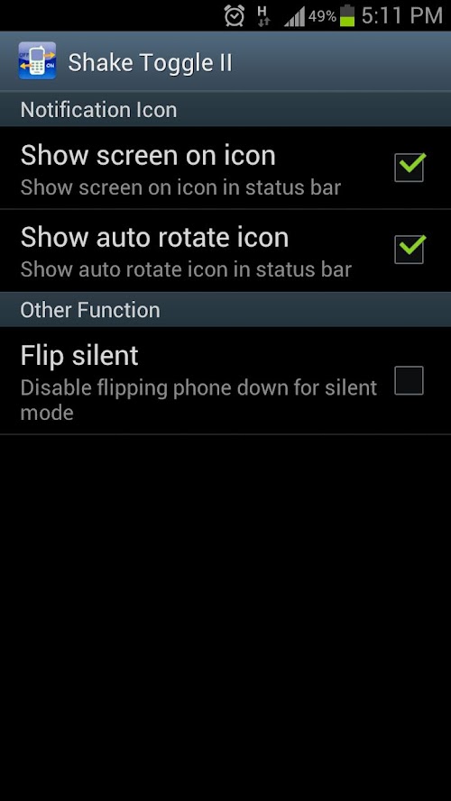 This version of Shake Toggle II Android App comes with one universal variant which will work on all the Android devices.