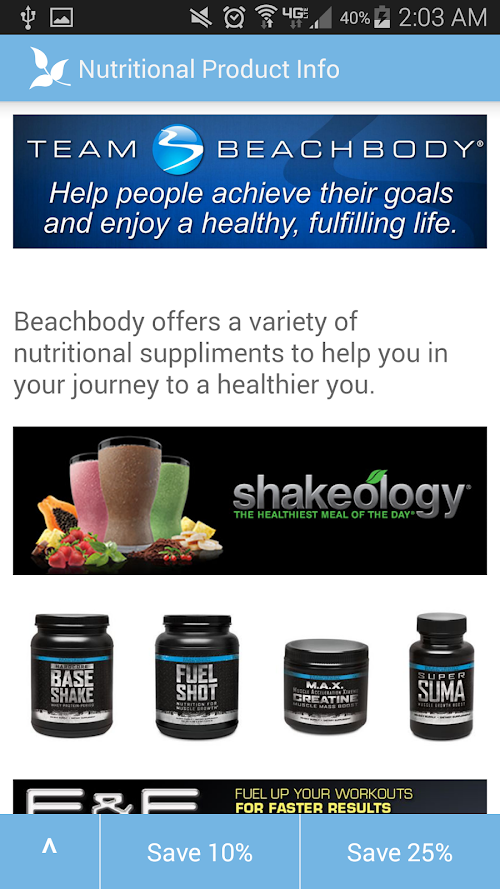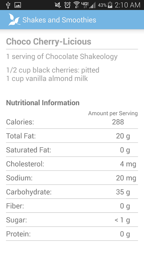 Beachbody is in no way affiliated with this application. This application is a catalog of recipes using beachbody products. The Beachbody name and Shakeology name is © 2012 Beachbody, LLC. All rights reserved.