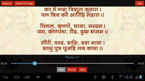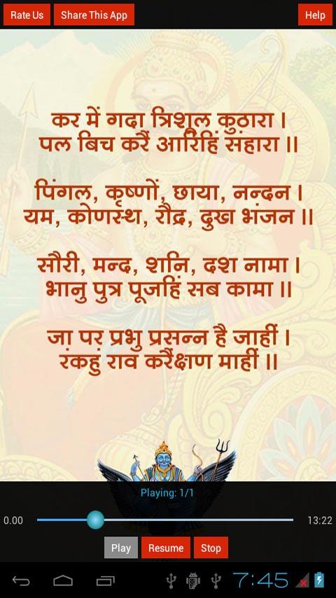 This Application contains Shani Chalisa in Hindi Language with Audio.