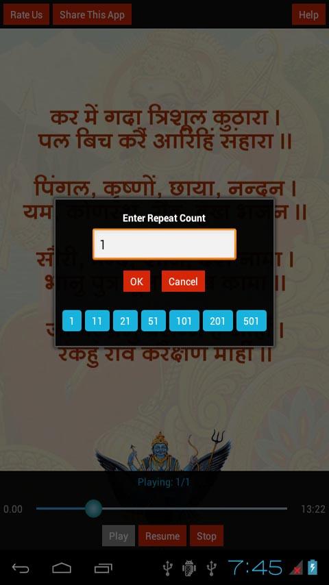 This version of Shani Chalisa, Repeat Option Android App comes with one universal variant which will work on all the Android devices.