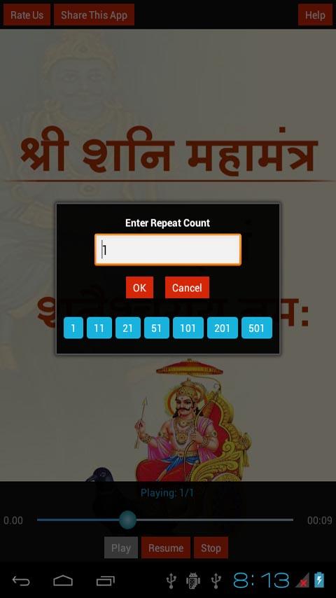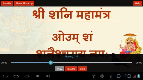 This version of Shani Mantra, Repeat Option Android App comes with one universal variant which will work on all the Android devices.