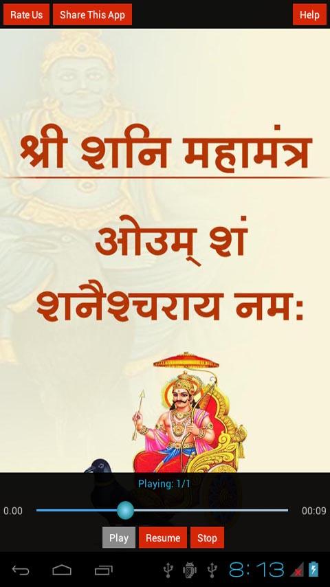 This Application contains Shani Mantra in Hindi Language with Audio.