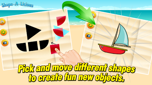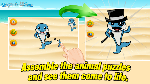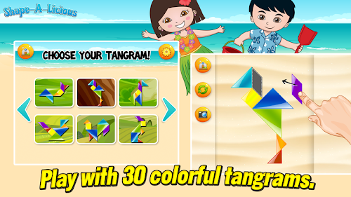 Help develop your child’s cognitive, math, and fine motor skills with Shape-A-Licious, a fun collection of puzzles and tangrams. This app is separated into 3 different categories consisting of 12 Basic Shapes, 30 Tangrams, and 12 Animal Puzzles. For the Basic Shapes category, pick and move different shapes to form fun objects such as a tree, fish, car, and rocket. For Tangrams, combine different parts to create imaginative new objects. Animal Puzzles will come alive after arranging different puzzle pieces together.
