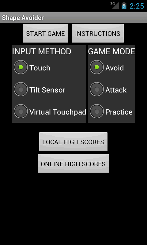 - Extra game modes: Attack lets you chase the enemies instead of avoiding them, Practice let's you get used to the controls without worrying about losing the game.