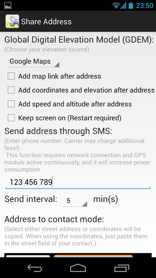 7. AUTOMATICALLY send current address to others through SMS periodically, your friends can know your location using any mobile phone