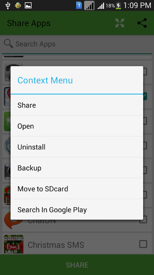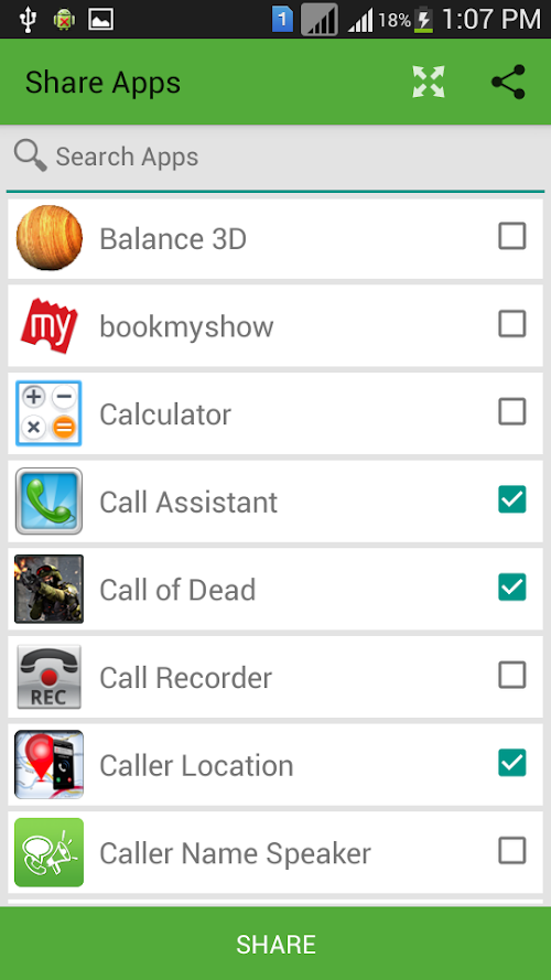 Share Apps will show the list of all installed apps in your phone. you can share any app via Bluetooth, ShareIt, Gmail, DropBox, Google Drive, Facebook, whatsApp, Line, Viber, WeChat..etc