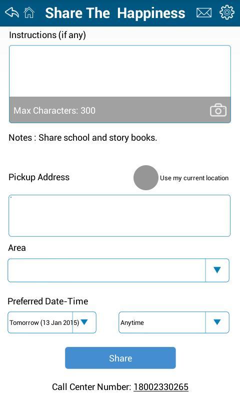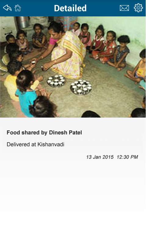 Once you submit your share request, a delivery vehicle will pick up items from your door step and deliver it to the nearest Anganwadi. After it has been delivered, the app will display a notification along with a photo of the delivery.