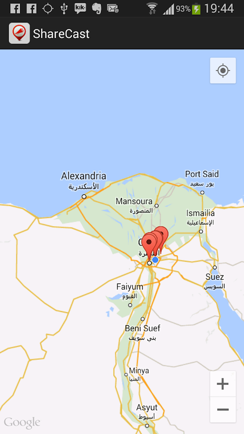 ShareCast is a multi-technology communication “platform” to facilitate the information-exchange between people, specifically in emergencies. The app has an “Emergency Button” to notify friends in case of an emergency via SMS, email, Facebook, Twitter and WhatsApp tagged with user's location. It also has the functionality of sending requests, as per a selection of six categories: Medical Emergency, Security Alert, Car Broke-down, Financial Support, Missing Person and Lost & Found.