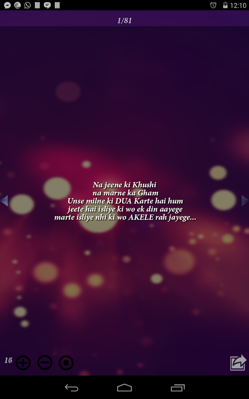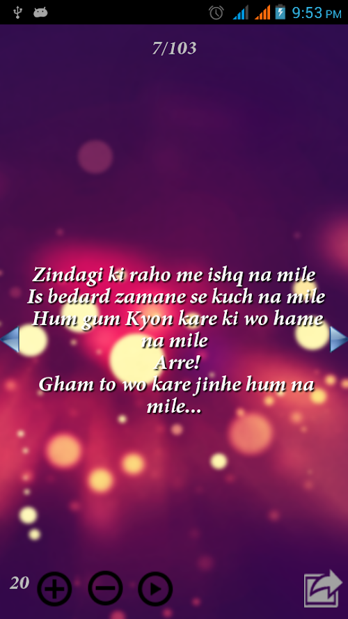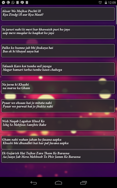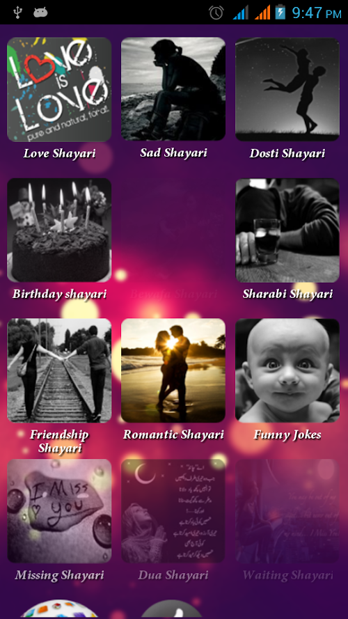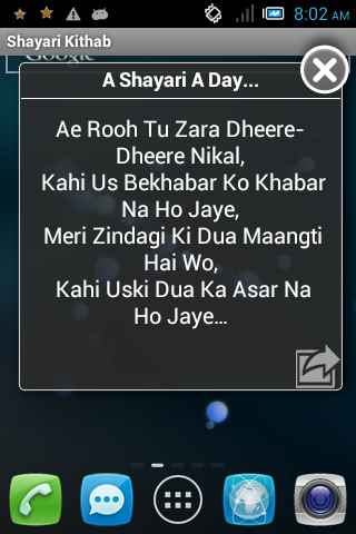 Whats special in this application is this app provides "A Shayari A Day" feature where every day morning it will get you a heart touching shayaries which you can share right away to the desired ones.