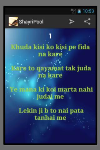I am starting with few shayris but this pool of shayri will grow when people send their shayri to me.If the shayri is good, I will add it in next app update along with sender name and address.