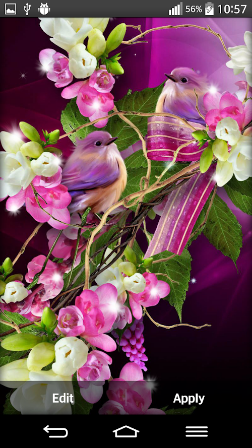The best wallpaper for girls is finally here! Lighten up your day with a bouquet of the most amazing flowers ever! Don’t be sad if the season of ‘’spring flowers’’ is over! Download ‘’Shiny Flowers Live Wallpaper’’ and spring and summer will last forever! You cannot afford to have your own flower garden? We bring a floral heaven to you! You are one ‘’free download’’ away from getting a colorful wonderland! This girly app is a perfect solution for all those who look for creative and innovative live wallpaper! Enter the scented heaven and find the flowers you like the most – purple lavender, red rose, white daisy, yellow sunflower and many more! Delete your old purple and pink wallpapers because our HD pictures will blow your mind! The wallpaper depicting these delicate plants colored with all shades of pink, red, white and purple and decorated with sparkles is what every girl dreams of! Be among the first ones to get this girls wallpaper and make your dreams come true!