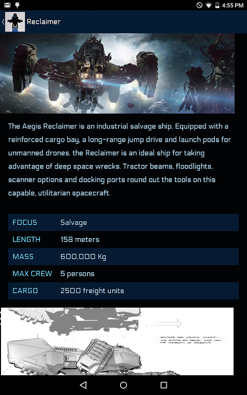 This app pulls in the latest information on ships from the upcoming game Star Citizen.  You can view descriptions, ship stats, and see the latest art and concept shots for each of the baddest vessels to blaze across the verse!