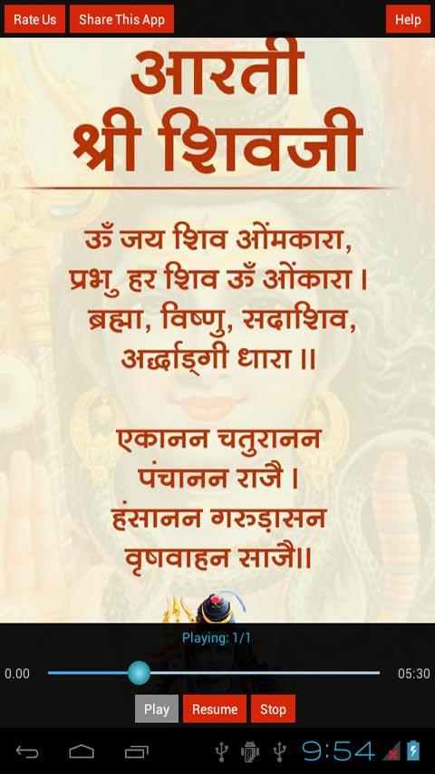 This Application contains Shiv Aarti in Hindi Language with Audio.