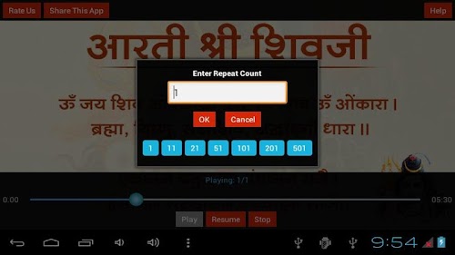 8. Feature to Repeat the Aarti as many times as you want.