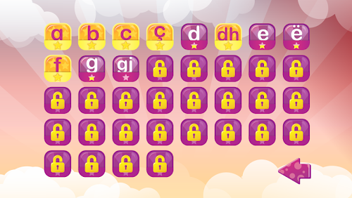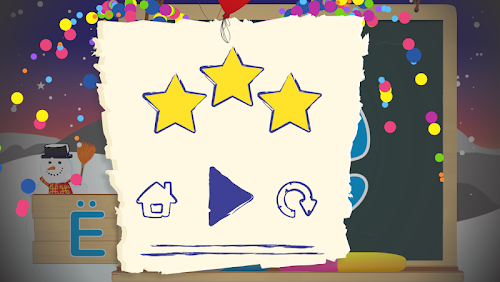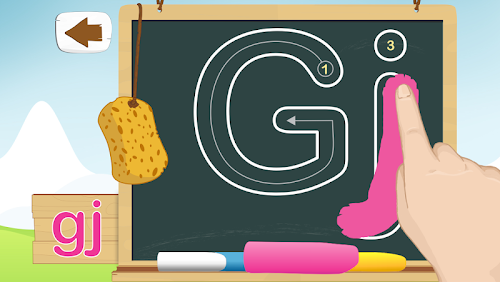 - Shkrimin e shkronjave në tabelë të zezë me katër ngjyra të ndryshme, ku nëse shkruan shkronjën si duhet atëherë merr 3 yjet maksimale, ndërsa nëse gabon mund të përdor shpuzën për fshirje.