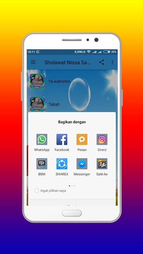 Kumpulan lagu sholawat NISSA-SABYAN merupakan Kumpulan Lagu Sholawat Nissa Sabyan : aneka mp3 sholawat terbaik dari Nissa Sabyan. Bagi anda yang suka mendengarkan suara indah Nissa Sabyan dalam melantunkan lagu sholawat maka anda perlu menginstal aplikasi yang satu ini. Kumpulan Lagu Sholawat Nissa Sabyan offline dapat diputar kapan saja tanpa perlu koneksi internet maupun jaringan wifi. Ayo putar terus lagu nya dan dengarkan suara indah Nissa Sabyan dalam bersholawat.Nissa set-SABYAN sholawat song is a collection of songs sholawat Nissa Sabyan: miscellaneous mp3 sholawat best of Nissa Sabyan. For those of you who like to listen to the beautiful sounds of singing a song Nissa Sabyan in sholawat then you need to install this one. Nissa set Sabyan offline sholawat Songs can be played at any time without an internet connection or wifi network. Come play continues his songs and listen to wonderful Nissa Sabyan in bersholawat.