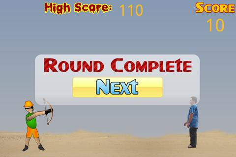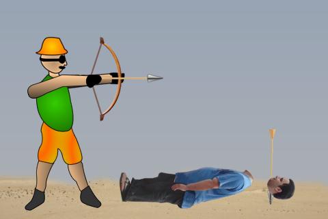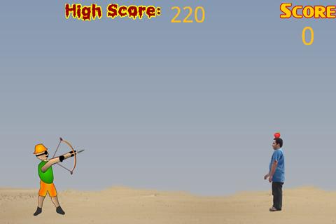 Shoot the apple that your friend is holding over his head. Be careful. The smallest error can mean the death or injury of your friend. So, be sure to shoot on the right angle.