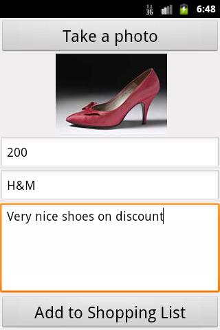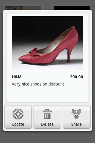 A Shopaholic is your shopping buddy which remembers a location, photo and price of your shopping items. You can later locate items from a shopping list on a map very easily with GPS.