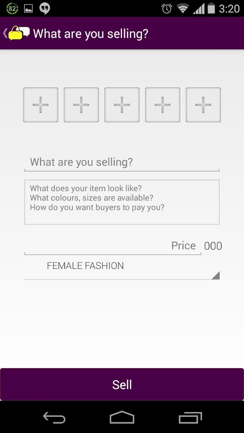 - Simple to sell: very easy to use - snap a picture, describe it, and tap sell!