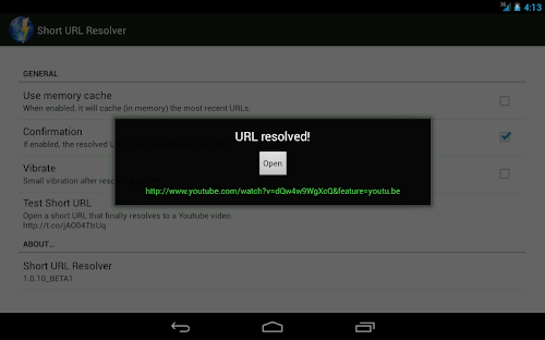 * Handles Youtube's attribution links. These should be handled by the Youtube app (Google's fault). Short URL Resolver handles them for you, so you get to see the video on the Youtube app. No browser involved.
