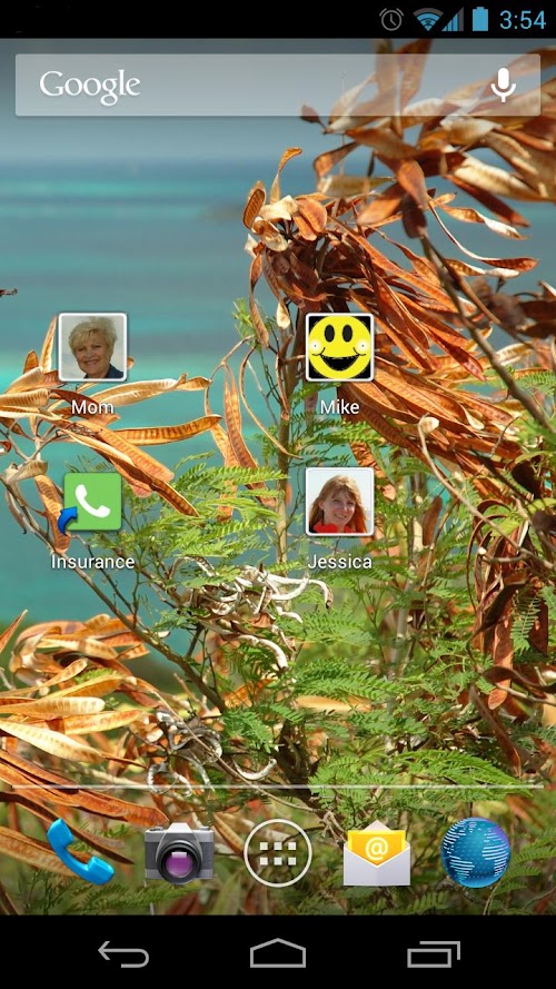 Just choose a number from Contacts and we create a shortcut on your Home Screen for you.