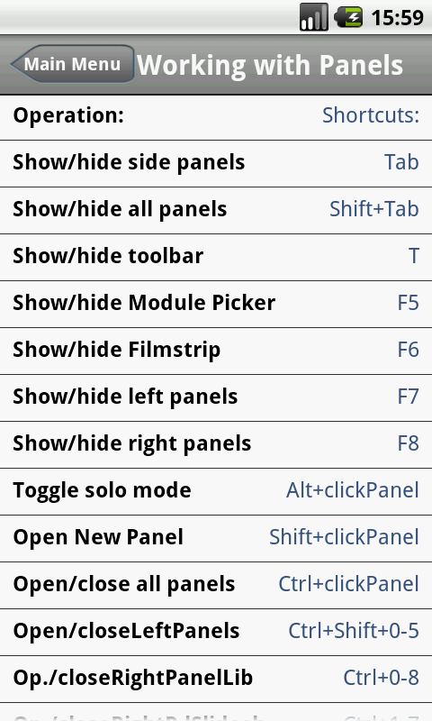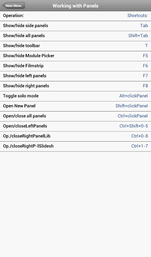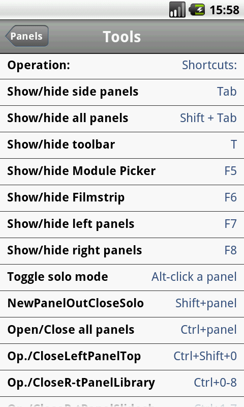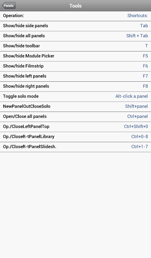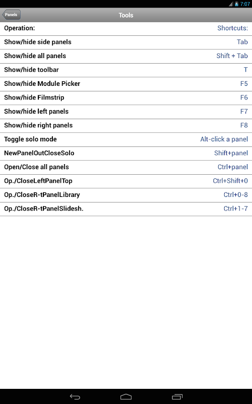 About Shortcuts for LightRoom Android App