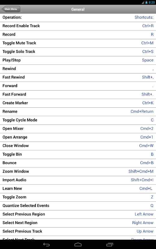 If you are looking to download other versions of Shortcuts for Logic Pro Android App, We have 1 version in our database. Please select one of them below to download.