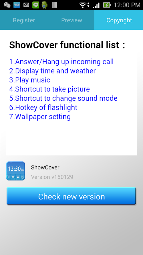 - After the VGH "start using Show Cover", cover cell phone holster appear Show Cover and incoming calls function.