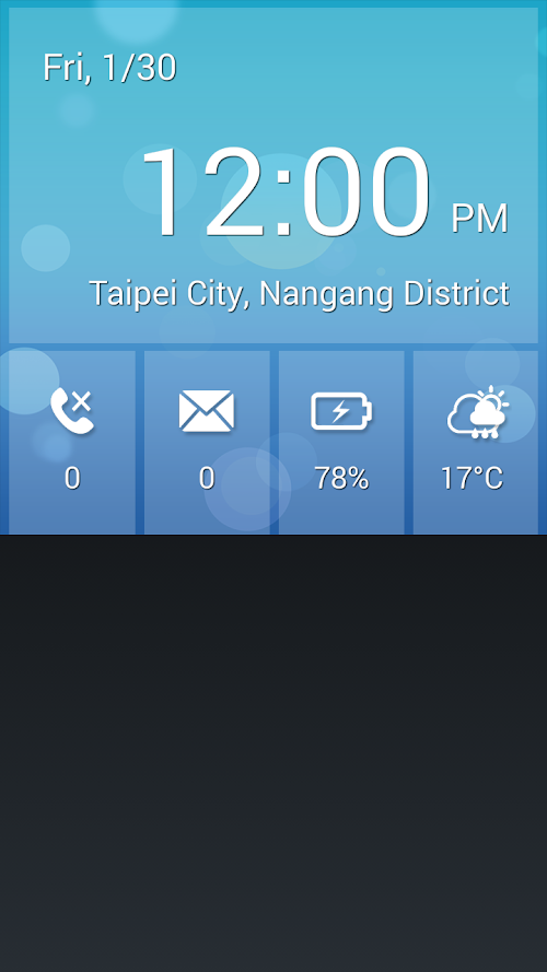 3. The main page features, you can display the date, time, area, weather, number of unread SMS, missed calls and the number of battery charge