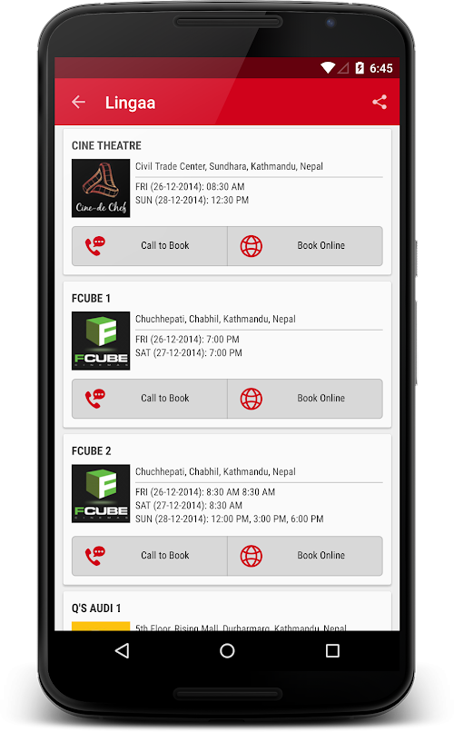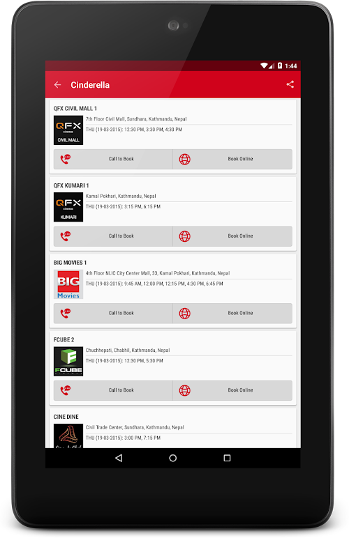 It helps to browse the movies and theater along with booking facility. App includes the contact information of major theaters of Nepal.