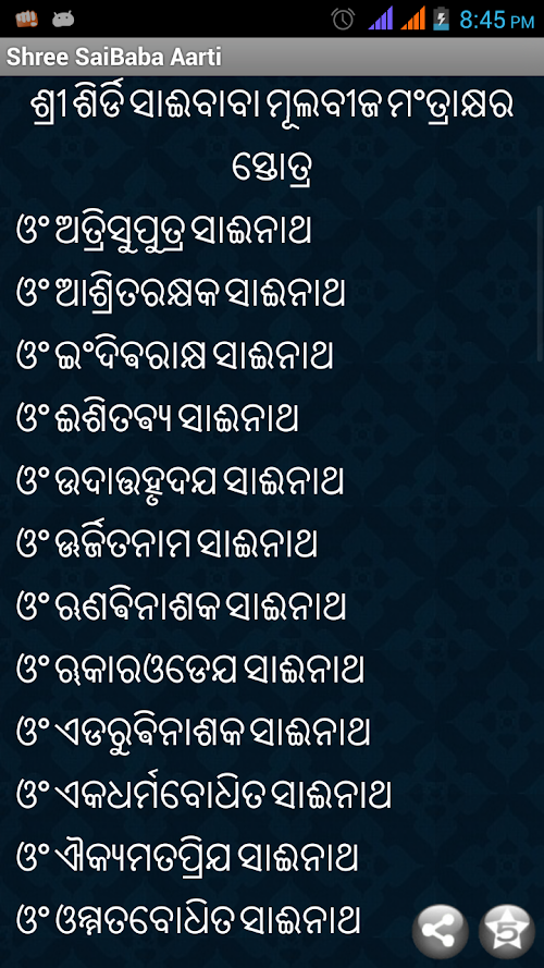 Shree SaiBaba Aarti In Odia is a devotional app very useful and comes in handy to chant aartis. The app displays all SaiBaba aartis along with moolabeeja mantrakshara stotram in clear odia font.
