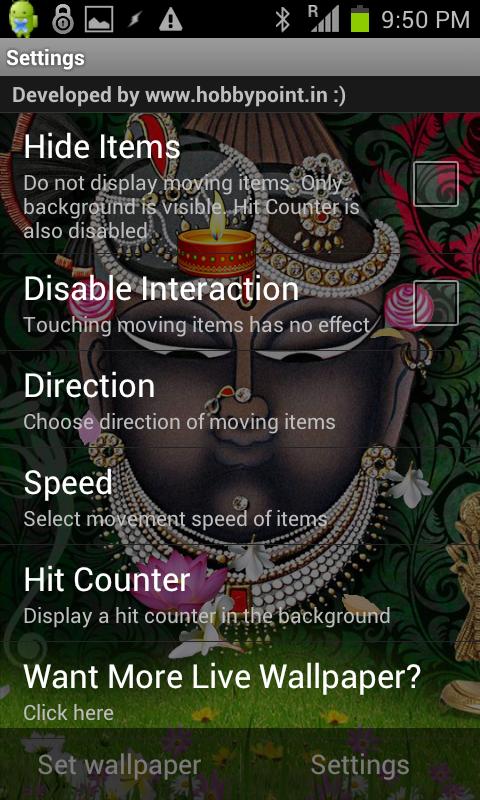 This is a beautiful high quality live wallpaper of Shreenathji. It features Lord Shreenathji with shower of animated flowers, diyas and leaves.