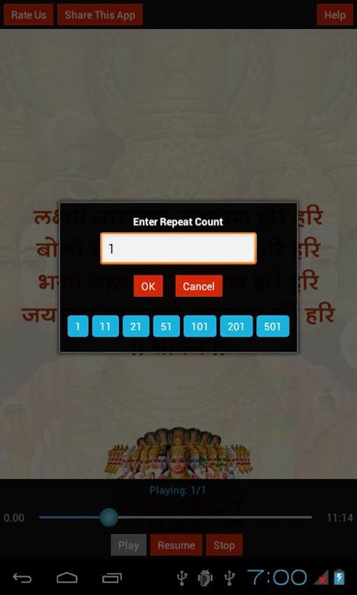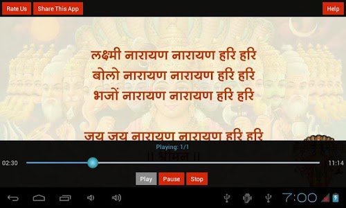 This Application contains Shriman narayan Bhajan in Hindi Language with Audio.