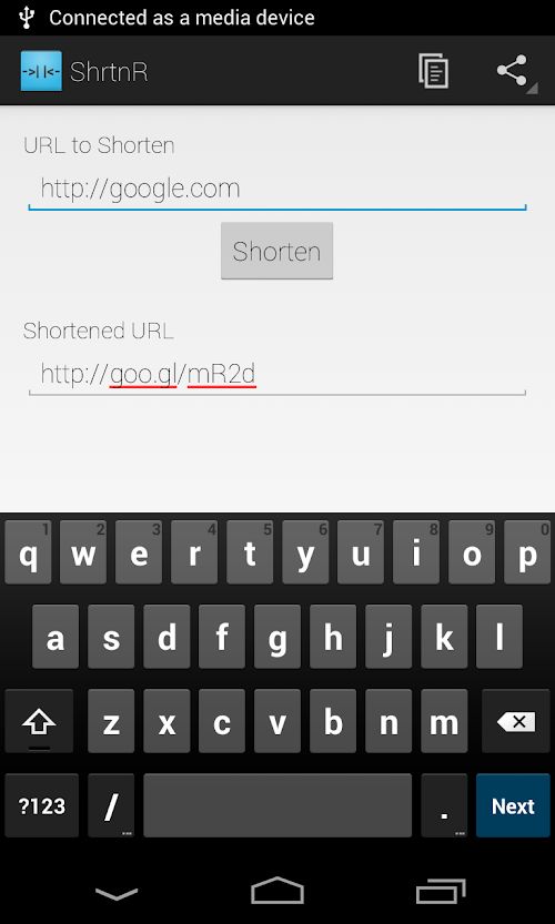Share Intent handing added - Shorten URL's from any app's sharing menu
