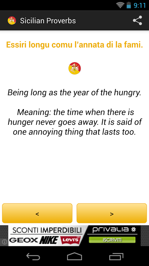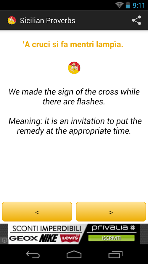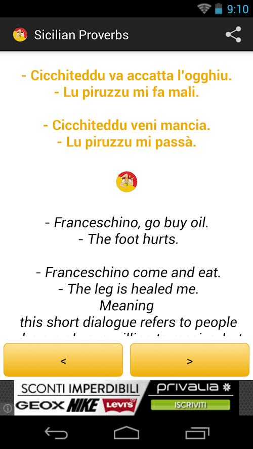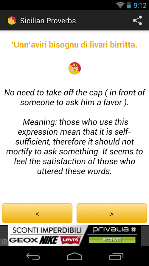 Taken from the portal SICILY IN THE WORLD, this app contains over 250 proverbs, idioms, tongue twisters and puns typical Sicilian.