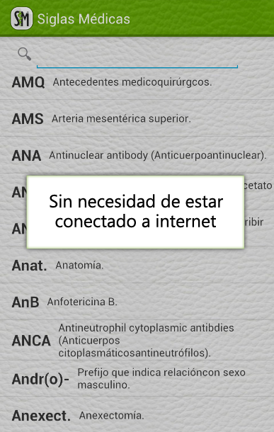 Siglas Medicas es un diccionario de siglas médicas de rápido acceso y sin Internet.