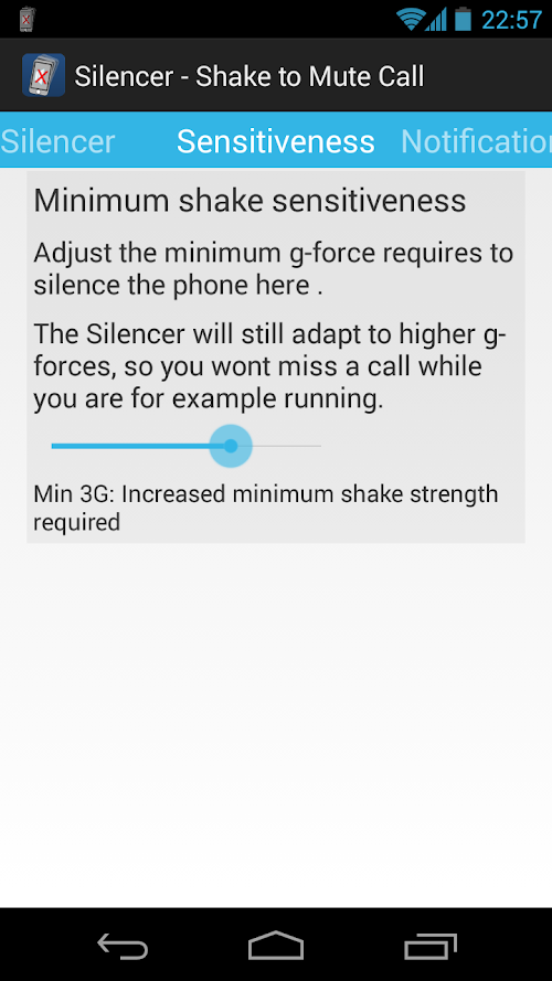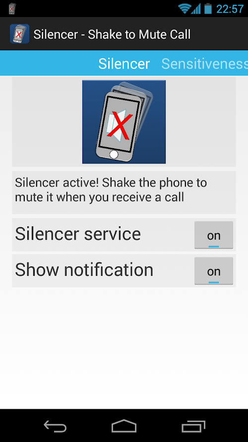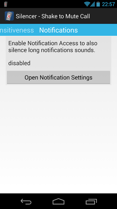 * Silence custom notification sounds with a slap, too! (only works on 4.3 or higher, requires new permissions)